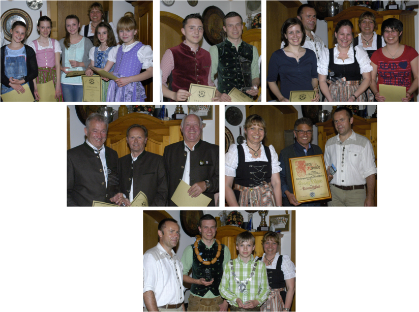 Schützengesellschaft “Edelweiß” Puch e.V.Aktuelles 2014/15Mitglied feiert 95. GeburtstagUnser langjähriges Mitglied und Ehrenmitglied HerbertKrämer feierte kürzlich seinen 95. Geburtstag.Natürlich durften bei der großen Feier auchGratulanten unseres Vereins nicht fehlen. Übungsschießen in der SommerpauseAn folgenden Terminen in der Sommerpause findet jeweils ab 19 Uhr ein Übungsschießen statt:12.06.201510.07.2015 (mit anschließendem Grillen)14.08.201511.09.2015Stadtmeisterschaft 2015Die 51. Stadtmeisterschaft im Luftgewehr- und Luftpistolenschießen 2015 der Brucker Schützenvereinefand vom Dienstag, den 5. Mai, bis Freitag, den 8. Mai 2015, im Schützenheim der „Edelweiß“ SchützenPuch statt. Es beteiligten sich 47 Schützen des startberechtigten Schützenvereins „Eichengrün“ Aich, derSportschützenvereinigung Fürstenfeldbruck (SSVG) und der Schützengesellschaft „Edelweiß“ Puch.Stadtmeister mit dem Luftgewehr wurde mit 291 Ringen Marianne Schmid-Maier (Puch) vor Franziska Dilger (284 Ringe, Puch) und Andreas Koszalkowski (283 Ringe, SSVG FFB). Sieger in den Altersklassen Luftgewehr wurden:Schülerklasse:Sonja Grabinger (Puch)203 RingeJugendklasse:Pia Schmiedl (Puch), Viktoria Karetnikova (SSVG) 226 RingeJuniorenklasse: Florian Kunze (SSVG) 270 RingeDamenklasse: Marianne Schmid-Maier (Puch) 291 RingeHerrenklasse:Andreas Koszalkowski (SSVG) 283 RingeDamen-Altersklasse: Petra Grimm (Puch) 264 RingeHerren-Altersklasse:Jürgen Rotter (SSVG) 279 RingeSeniorenklasse: :Alfred Titze (Puch) 275 RingeSenioren Auflage: Franz Lengenfelder (Puch)292 RingeMit der Luftpistole wurde Bernd Rosenstein Stadtmeister mit 276 Ringen, gefolgt von Mirko Thieme mit 272 Ringen und Bernd Fischer mit 270 Ringen (alle von der SSVG FFB)Die Luftpistolenschützen werden nur in drei Altersklassen unterteilt, wobei dieses Jahr nur zwei Klassen besetzt waren:Schüler- Jugend, Junioren-, Damen und Herrenklasse: Mirko Thieme (SSVG) 272 RingeDamen-Alters-, Herren-Alters- und Seniorenklasse: Bernd Rosenstein (SSVG) 276 RingeDie Mannschaftwertung gewann Edelweiß Puch mit 2785 Ringen vor der Sportschützenvereinigung FFB (2722 Ringen) und den Schützen von Eichengrün Aich (2501 Ringen).Beim gleichzeitig durchgeführten Königsschießen siegte, und wurde damit Stadtkönig, Markus Titze mit einem 69,4 Teiler, Vizekönig wurde Annelen Aumiller mit einem 82,3 Teiler, beide aus Puch.Die detaillierten Ergebnisse sind hier zu finden.Jahresmeisterschaft 2014/15 und Königsschießen 2015Die jeweils Ersten der Klassenwertungen der Jahresmeisterschaft 2014/15 lauten:Schülerklasse: Pia SchmiedlSchülerklasse (aufgelegt):Amelie SchmiedlJuniorenklasse: Korbinian GrimmSchützenklasse: Sebastian TitzeDamenklasse: Marianne Schmid-MaierHerren Altersklasse: Hendrik SeyberthSeniorenklasse: Alfred TitzeSenioren-Altersklasse (aufgelegt): Franz LengenfelderJahresmeister aller Klassen wurde Marianne-Schmid-Maier.Im Rahmen der Siegesfeier zur Jahresmeisterschaft 2014/15 wurden auch unsere neuen Könige proklamiert.Schützenkönig 2015 ist Annelen Aumiller mit einem 22,1 Teiler, Schwarzkönig Markus Titze mit 97 Ringen und Vize-König Franziska Dilger mit einem 64,7 Teiler.Bei der Jugend setzte sich Vitus Grimm als Jugendkönig mit einem 93,6 Teiler vor Korbinian Grimm mit einem 98,0 Teiler durch.Für die Teilnahme an Rundenwettkämpfen wurden Heinz-Peter Zöller für 150, Marianne Schmid-Maier für 200 und Georg Dilger für die Teilnahme an 400 RWKs geehrt.Zudem wurde Georg Dilger zum Ehrenmitglied des Vereins ernannt.Volksfesteinzug April 2015RWK-Endstand Saison 2014/15Gauliga 2:1.Landsberied 11020 : 01498,602.Puch 11014 : 61496,303.Gernlinden 11012 : 81493,804.Malching 110 6 : 141475,105.Egenhofen 110 6 : 141470,506.Türkenfeld 110 2 : 181442,40A-Klasse 1:1.Althegnenberg 11014 : 61469,702.Hattenhofen 11014 : 61460,603.Puch 21014 : 61456,204.Aufkirchen 11012 : 81445,705.Zankenhausen 110 4 : 161447,406.SSVG FFB 210 2 : 181424,20Brucker Gaupokal 2014/15: 2. RundeWaldschützen Gernlinden : Edelweiß Puch 774,8 : 686,7Mannschaftsergebnis: Ringe Blattl Punkte Markus Titze277 +15,1= 38,1Franziska Dilger 287 + 43,6= 56,6 Hendrik Seyberth266 + 56,0 = 70,2Annelen Aumiller 279 + 52,0 = 73,0 Marianne Schmid-Maier 285 +65,2 = 80,2 Heinz-Peter Zöller 272 + 36,2= 113,4 Korbinian Grimm 260 + 84,1 = 124,1Sebastian Titze 274 + 105,1= 131,1Georg Dilger262 + 138,4= 176,4Katharina Titze 253 + 165,5= 212,5 Gesamtergebnis: 686,7 PunkteErgebnisse bei der Gaumeisterschaft 2015Schülerklasse: 15. Sonja Grabinger 144 RingeJuniorenklasse B: 4. Korbinian Grimm 350 RingeDamenklasse: 1. Marianne-Schmid Maier* 385 + 93,5 = 478,5 Ringe5. Franziska Dilger* 382 + 91,5 = 473,5 RingeHerren-Altersklasse: 15. Heinz-Peter Zöller 363 RingeSeniorenklasse A: 1. Alfred Titze* 376 RingeSeniorenklasse B Auflage: 3. Peter Rüge 288 RingeKK-Gewehr (3 x 20): 1. Marianne Schmid-Maier* 534 RingeKK liegend: 1. Marianne Schmid-Maier* 568 Ringe* mit Startberechtigung bei der Bezirksmeisterschaft in HochbrückRWK 10. RundePuch 1 : Landsberied 1 - 1494 : 1496Puch 2 : Althegnenberg 1 - 1453 : 1478Jahreshauptversammlung 2015Am Freitag, den 20. März 2015, fand um 20 Uhr im Schützenstüberl des Gemeinschaftshauses inPuch die diesjährige Jahreshauptversammlung statt. Auf der Tagesordnung standen nach derBegrüßung und den Berichten des Schützenmeisteramtes, des Sportleiters, der Mannschaftsführer,des Jugendleiters, des Kassiers und der Kassenprüfer Neuwahlen und Ehrungen. Das bisherige Schützenmeisteramt sowie alle Mitglieder des Vereinsausschusses wurden bei denNeuwahlen in ihren Ämtern bestätigt. 1. Schützenmeisterin ist Petra Grimm, zu ihrem Vertreter wurdeHendrik Seyberth gewählt. Sportleiter ist Alfred Titze während die Verantwortung für die JugendWerner Aumiller obliegt. Das Schützenmeisteramt wird komplettiert durch Kassier Katharina Titzeund Schriftführerin Marianne Schmid-Maier. Folgende Beisitzer wurden gewählt: Georg Amann,Annelen Aumiller, Fran
