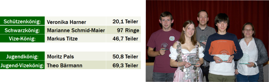 Schützengesellschaft “Edelweiß” Puch e.V.Aktuelles 2021/22Altpapier-Sammlung am Samstag, den 06. August 2022Die nächste Altpapier-Sammlung unseres Vereins findet turnusmäßig am Samstag, den 06. August, statt. Wie gewohnt, bitte das Altpapier gebündelt am Straßenrand ab 09:00 Uhr bereit legen. Vielen Dank!Fahnenweihe der Landjugend am Samstag, den 21. Mai 2022Liebe Mitglieder,am kommenden Samstag, den 21. Mai 2022, findet die Fahnenweihe der Landjugend Puch statt. Im Anschluss an dem Gottesdienst um 14.00 Uhr findet ein Umzug statt. Zu dessen Teilnahme sind neben unserer Fahnenabordnung und den Schützenkönigen auch alle anderen Vereinsmitglieder herzlich eingeladen.Sommerprogramm 2022Liebe Mitglieder der Schützengesellschaft Edelweiß Puch!Seit Anfang April gibt es auch im Sportbereich von staatlicher Seite her keine coronabedingten Einschränkungen mehr. Somit entfallen alle Zugangsregelungen, sowohl für Sportler als auch für Zuschauer. Dennoch ist weiterhin Vorsicht geboten, auch wenn die Inzidenzen jetzt glücklicher-weise wieder sinken.Regelmäßige Vereinsabende mit Jahresmeisterschaft werden wir erst wieder im September anbieten. Die bereits erzielten Ergebnisse aus der Saison 2021 werden dann in die neue Saison übernommen. Wer aber auch jetzt schon schießen möchte, um zu trainieren, soll sich bei der 1. Vorsitzenden melden. Bei Bedarf werden dazu freitags Trainingsmöglichkeiten angeboten. Dennoch wollen wir das Vereinsleben auch jetzt schon durch ein paar gemeinsame Aktivitäten wiederbeleben. Das Sommerprogramm 2022 umfasst folgende Termine: 22.04.202218.00 UhrVolksfesteinzug (Aufstellung: 17.30 Uhr beim Alten Rathaus) 21.05.2022Fahnenweihe der Landjugend Puch 24.05.2022voraussichtlich Siegerehrung des Gaujugendwanderpokals 04.06.2022Papiersammlung01.07.202218.30 Uhr Jahreshauptversammlung mit anschließendem Grillen 03.07.2022100 Jahre Schützengau Fürstenfeldbruck (Teilnahme der Fahnenabordnung) 06.08.2022Papiersammlung16.09.2022 Anfangsschießen Saison 2022/23Mit Schützengruß und den besten Wünschen, Petra Grimm(1. Schützenmeisterin)Die nächste Altpapier-Sammlung unseres Vereins findet turnusmäßig am Samstag, den 04. Juni, statt. Wie gewohnt, bitte das Altpapier gebündelt am Straßenrand ab 09:00 Uhr bereit legen. Vielen Dank!Siegerehrung Gaujugend-Wanderpokal entfälltDie für den 27. November 2021 angesetzte Siegerehrung des Gaujugend-Wanderpokals bei uns in Puch entfällt aufgrund der geltenden 15. Bayerischen Infektionsschutzmaßnahmenverordnung.neue Corona-Regeln ab 24.11.: Vereinsbetrieb eingestelltAufgrund der ab 24. November 2011 gültigen 15. Bayerische Infektionsschutzmaßnahmenverordnung (15. BayIfSMV) vom 23. November 2021 wird der gesamte Schieß- und Stüberlbetrieb bei uns im Verein ab sofort uns bis auf Weiteres, zumindest bis 15. Dezember 2021, eingestellt.Unsere Könige 2021Saisonbeginn 2021/22 am Freitag, den 17. September 2021Wir starten in die neue Schießsaison 2021/22 am Freitag den 17.September 2021. Wie gewohnt beginnt die Jugend um 18.15 Uhr. Wie letztes Jahr ist ein Schießen nur nach vorheriger Anmeldung hier auf der Website möglich. Außerdem gilt die 3G-Regel. Weiterhin besteht im gesamten Gebäude Maskenpflicht (medizinische Maske oder FFP2).Alle weiteren Information sind in dem auf der Anmeldungsseite hinterlegten Hygienekonzept nachzulesen.Das Stüberl ist voraussichtlich ab Freitag, den 01. Oktober geöffnet, allerdings nur mit Getränkeausschank und ebenfalls unter Einhaltung der 3G-Regel.